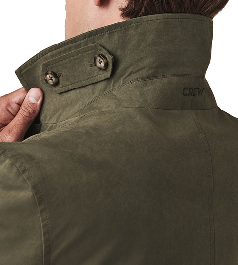 'Coastal inspired British firm Crew Clothing makes well priced classic garments. This polyester cotton car coat is wax coated and has a cool black watch tartan lining.'