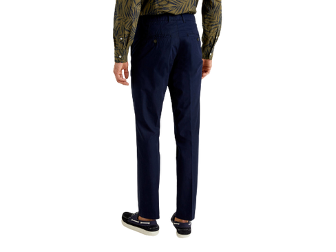 Long chino model trousers in light cotton. Front pockets and small pocket with button on the back. Opening with zip and button. Slim fit. To be worn with a turn-up for an even more casual look.