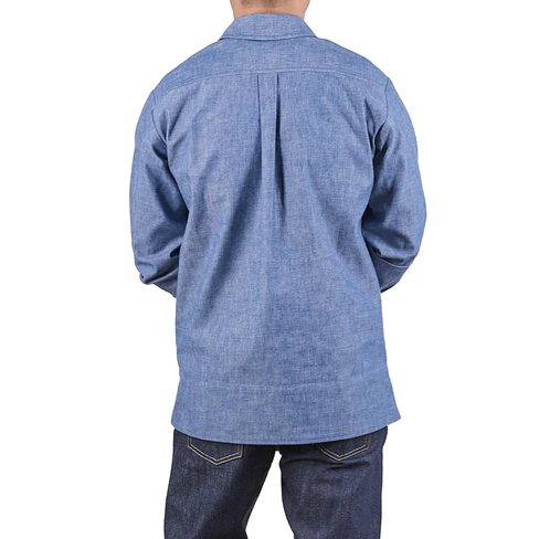 'A heritage-inspired pop-over smock with a boxy cut. The rigid chambray will soften over time, so expect a beautiful top that you’ll wear year-long. Definitely unisex. Made in London, E17. SOLD OUT CLICK SHOP VINTAGE.'